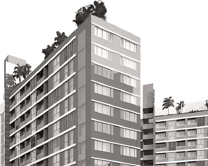 84 unidades residenciales de 45 a 57m2 con amenidades.